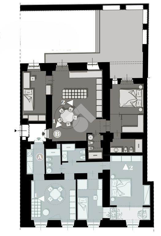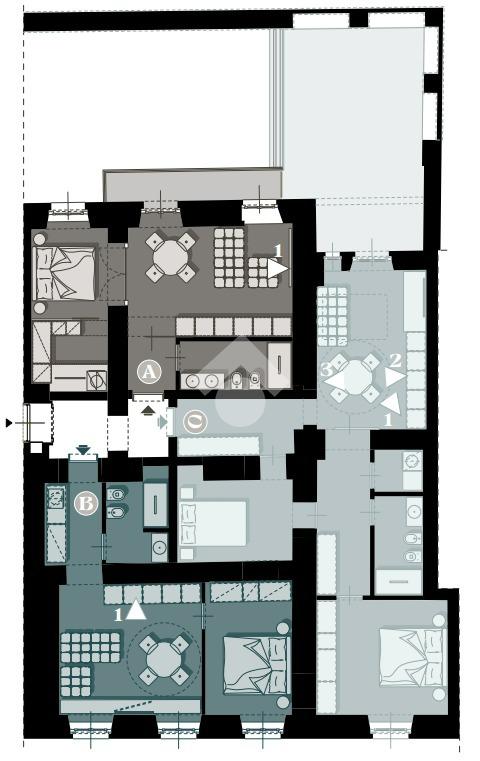 Attualmente troviamo sei ambienti distinti e separati che possono essere destinati e personalizzati in base alle proprie esigenze abitative.